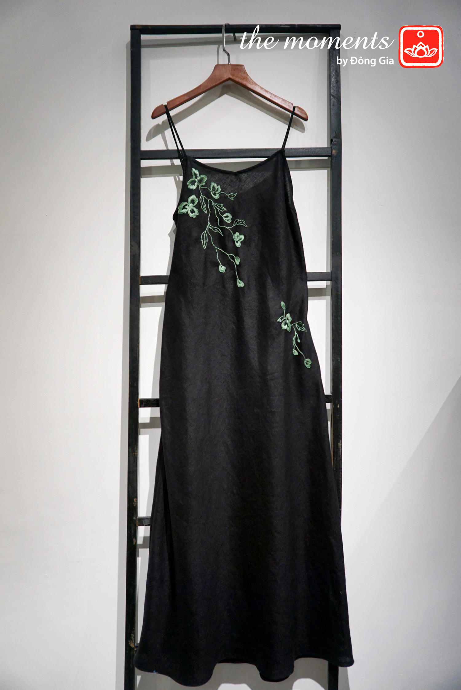 Mang tinh thần tối giản nhưng không kém phần thanh lịch, đầm 2 dây thêu từ The Moments là sự kết hợp hài hoà giữa vẻ đẹp tự nhiên và nghệ thuật thủ công. Hoạ tiết thêu tay trên chiếc đầm được lấy cảm hứng từ những loài hoa đồng nội, tượng trưng cho sự thuần khiết và vẻ đẹp mộc mạc nhưng tràn đầy sức sống. Thiết kế hai dây phóng khoáng với dáng suông nhẹ cùng hoạ tiết thêu tay tỉ mỉ tạo nên một tổng thể trang phục vừa thoải mái, vừa thanh tao.